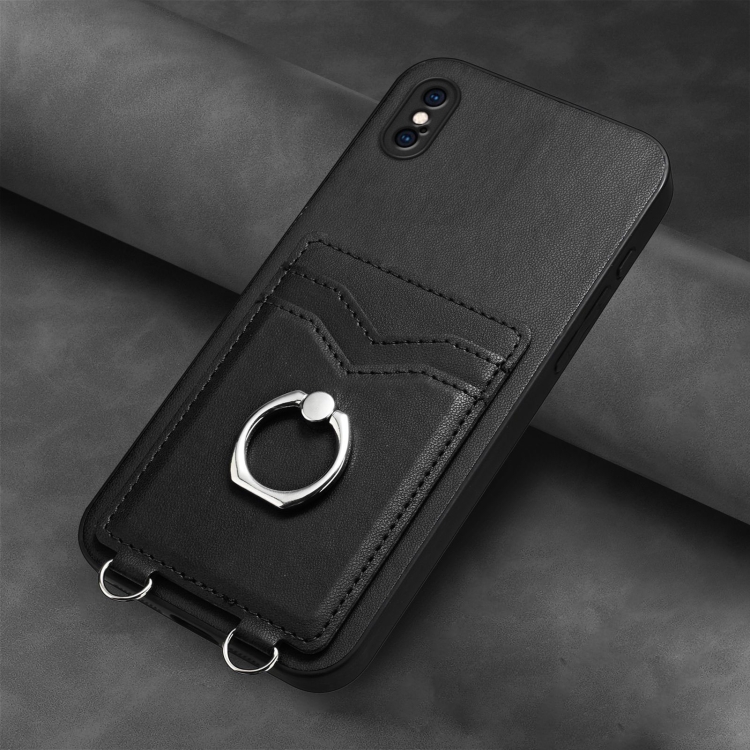 Estuche para Teléfono iPhone Xs Max R20 con Soporte para Tarjeta y Anillo (Negro)