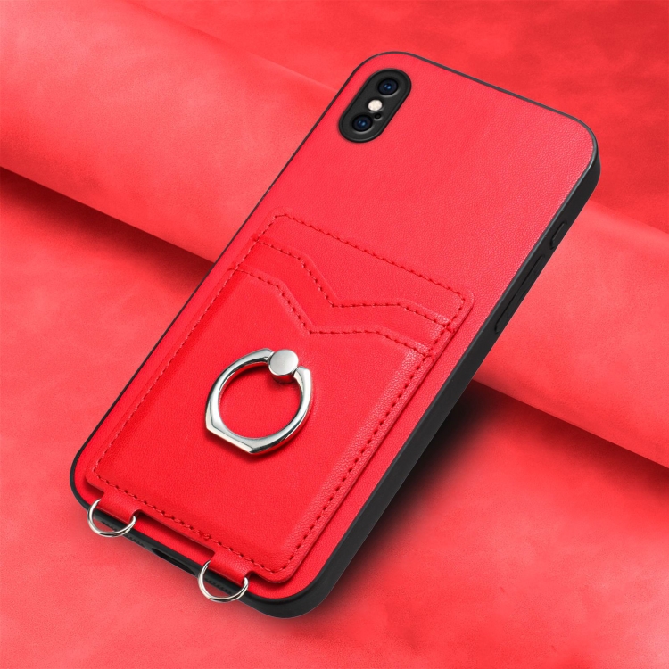 Estuche para Teléfono iPhone Xs Max R20 con Soporte para Tarjeta y Anillo (Rojo)