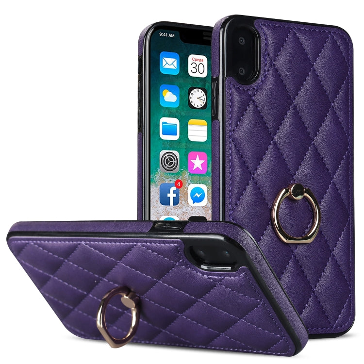 Funda para iPhone Xs Max Rhombic PU Cuero con Soporte para Anillo (Púrpura)