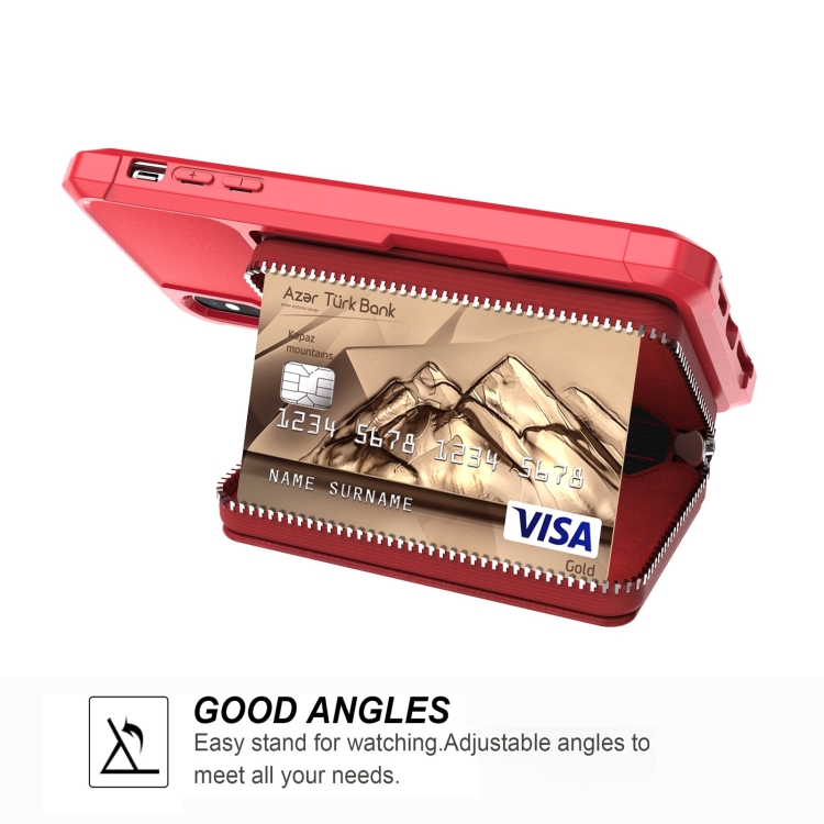 Funda Back Case iPhone Xs Max Zipper Wallet Card Bag Pu (Rojo)