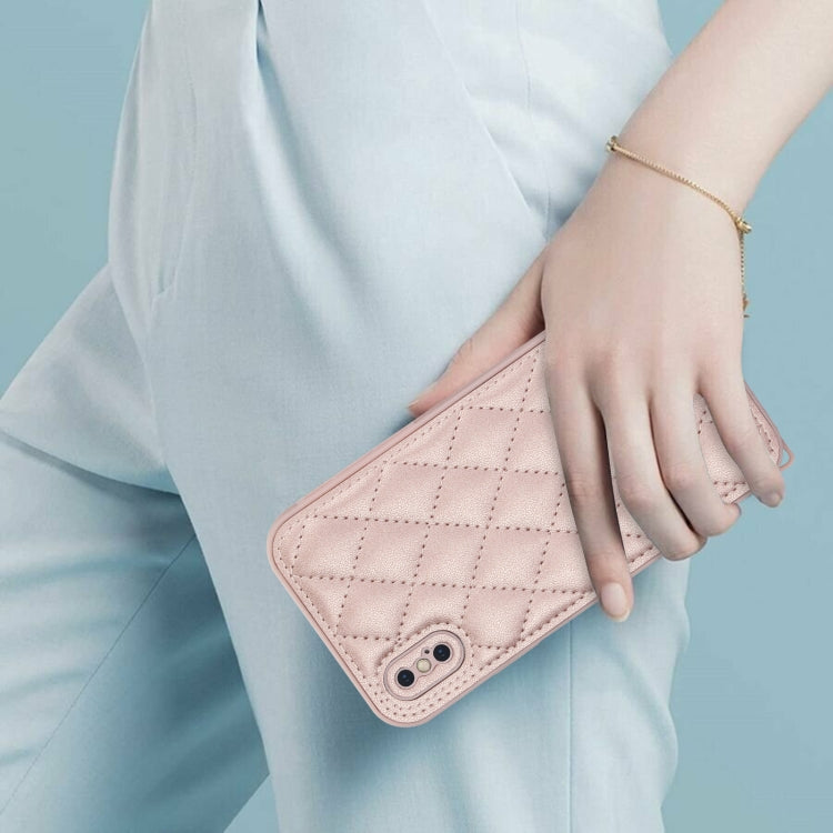 Estuche para Teléfono iPhone Xs / X Textura Rómbica y Cordón Doble (Oro Rosa)