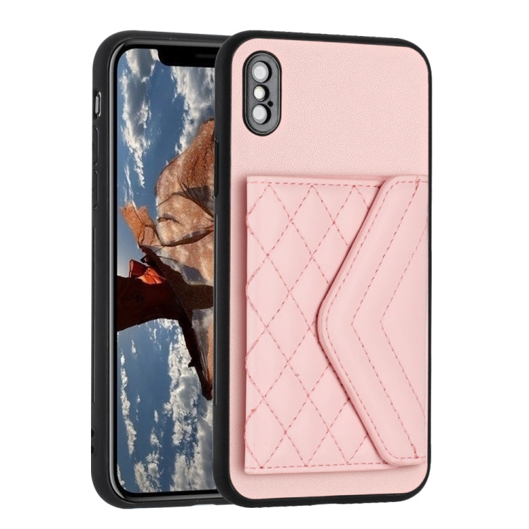 Estuche para Teléfono iPhone Xs / X con Protección Rfid Bolsa para Tarjetas Textura Rómbica y Cordón Largo (Oro Rosa)