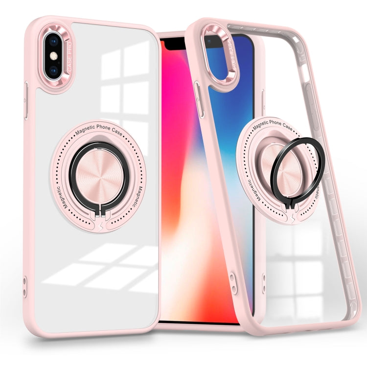 Funda para Teléfono iPhone Xs / X con Soporte de Anillo Giratorio Magnético (Rosa)
