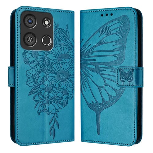 Funda para Teléfono Itel A05S Cuero con Mariposa en Relieve (Azul)