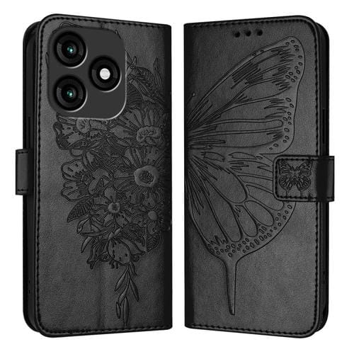 Funda de Cuero para Itel A70 con Mariposa en Relieve (Negro)