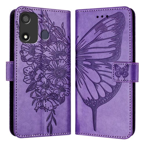 Funda para Teléfono Itel P17 / A27 Cuero con Mariposa en Relieve (Púrpura Claro)