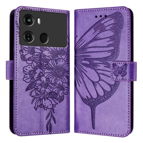 Funda de Cuero para Itel P40 con Mariposa en Relieve (Púrpura Claro)