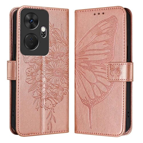 Funda de Cuero para Itel P55 con Mariposa en Relieve (Oro Rosa)