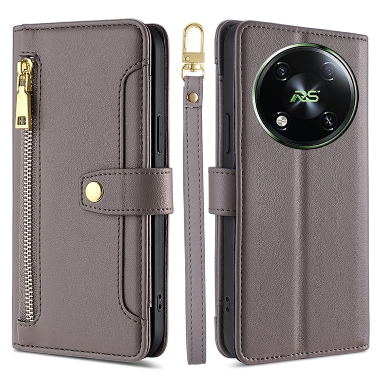 Estuche de Cuero para Itel Rs4 4G con Billetera, Cremallera y Textura de Oveja (Gris)