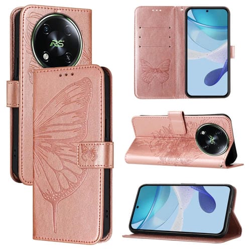 Funda para Itel Rs4 S666Ln de Cuero con Mariposa en Relieve (Oro Rosa)