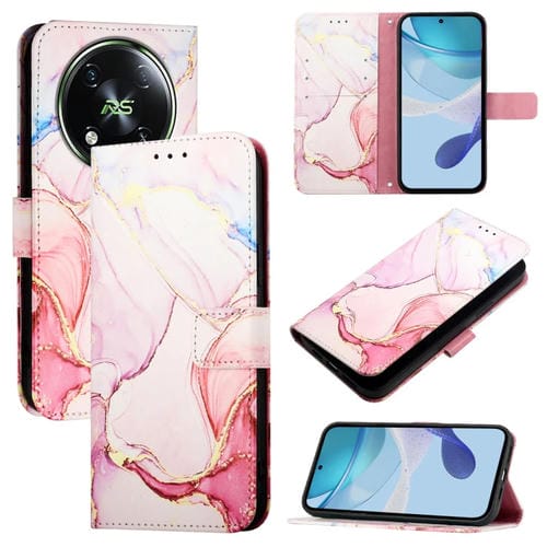 Funda de Cuero para Itel Rs4 S666Ln Pt003 con Tapa y Patrón de Mármol (Oro Rosa)
