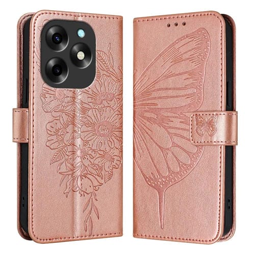 Funda de Cuero para Itel S23 con Mariposa en Relieve (Oro Rosa)
