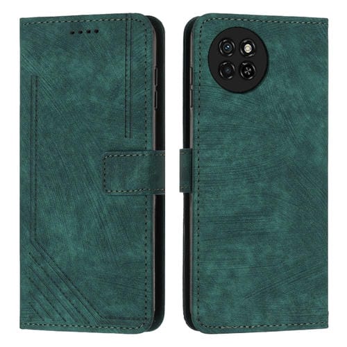 Funda de Cuero para Itel S23 con Patrón de Rayas y Cordón (Verde)