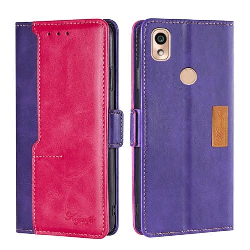 Funda de Cuero con Hebilla para Kyocera Ky-51B (Púrpura + Rosa Roja)