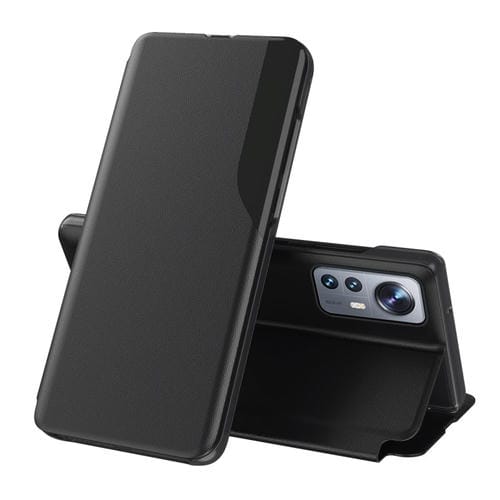 Para la Caja del Teléfono de Cuero Flip de Pantalla Lateral Xiaomi 12 Pro con Soporte (Negro)
