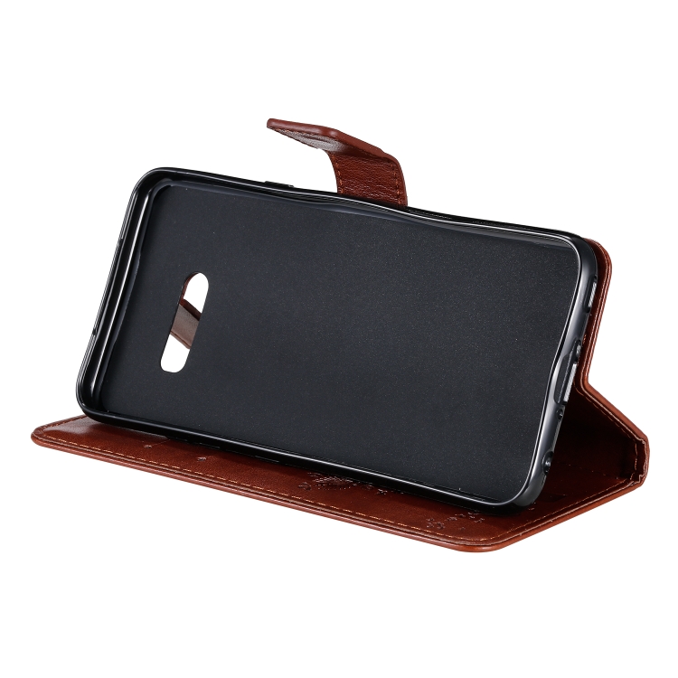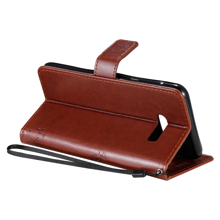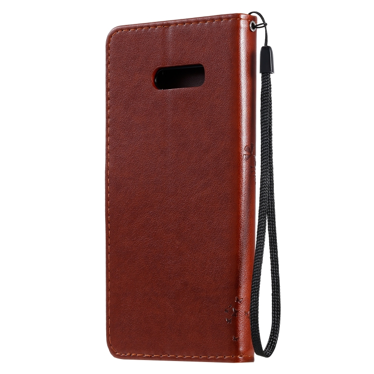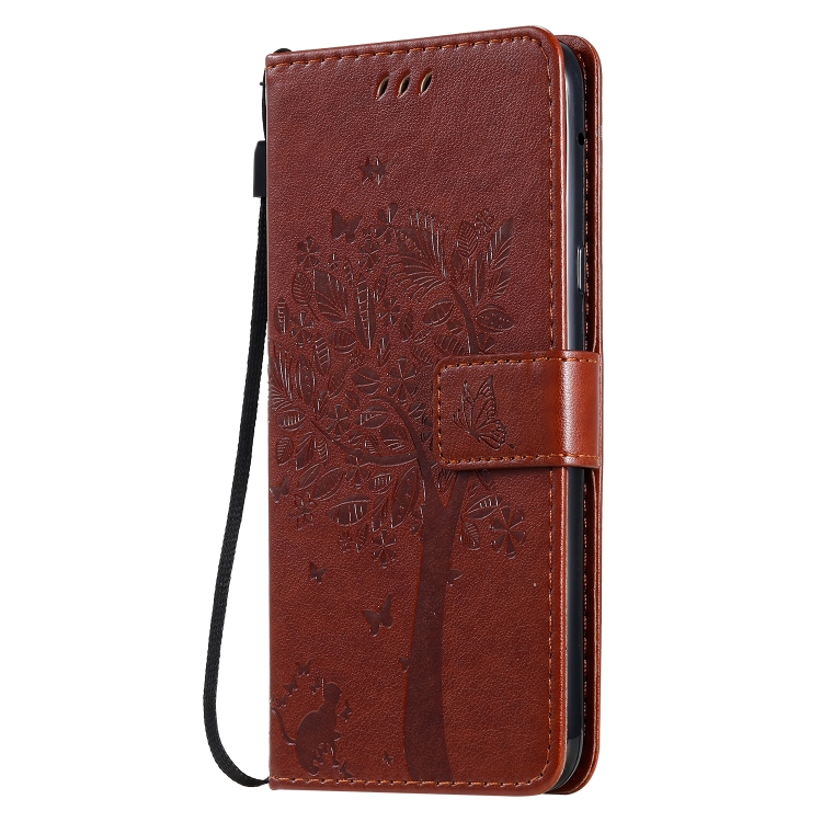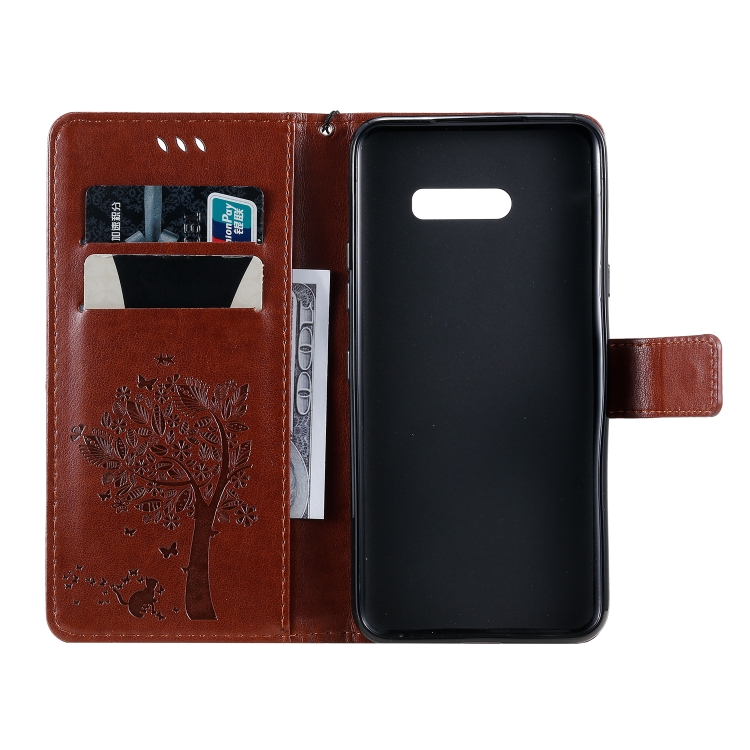 Funda para LG G8X Cuero PU con Patrón de Árbol y Gato, Tapa Horizontal, Soporte, Ranuras y Cordón (Café)