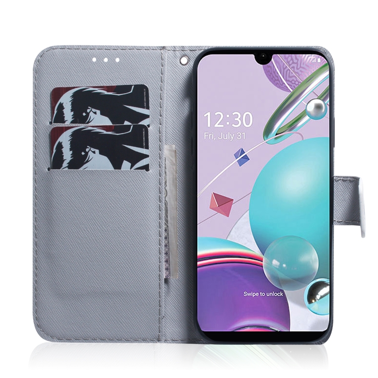 Funda de Cuero Abatible Horizontal para LG K31 Aristo 5 con Soporte, Ranuras para Tarjetas y Billetera (Flor de Albaricoque)