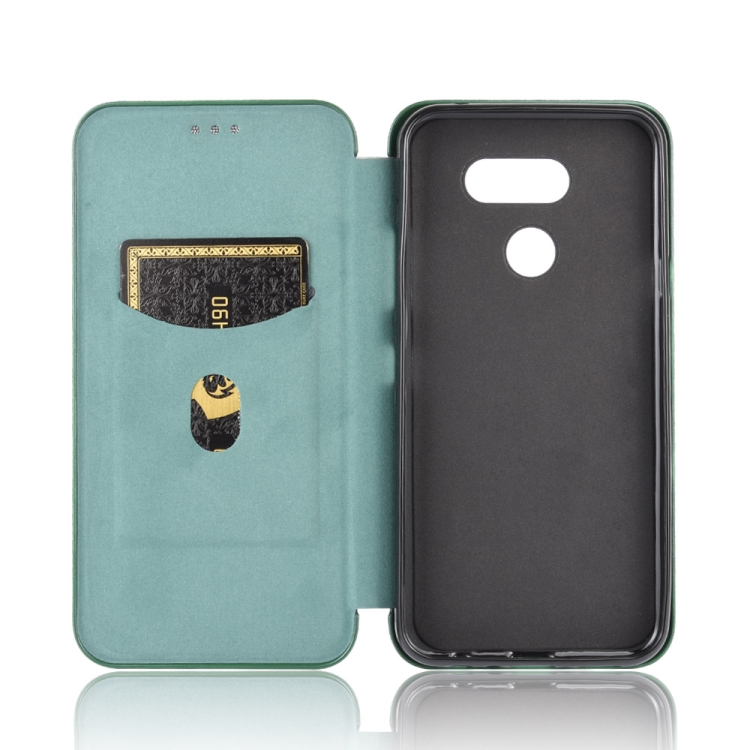 Funda de Cuero para LG K40S con Tapa Magnética Horizontal Textura Fibra de Carbono TPU + PC + PU (Verde)