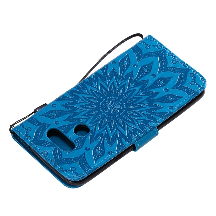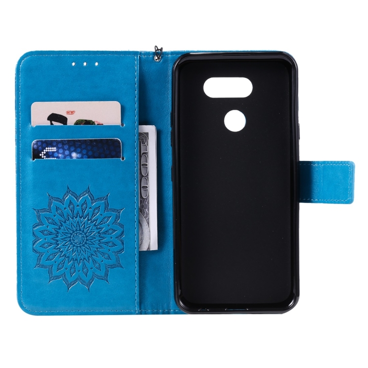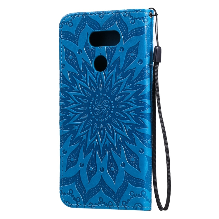 Funda Cuero PU LG K40S con Tapa Horizontal, Soporte, Ranuras y Cordón (Azul)