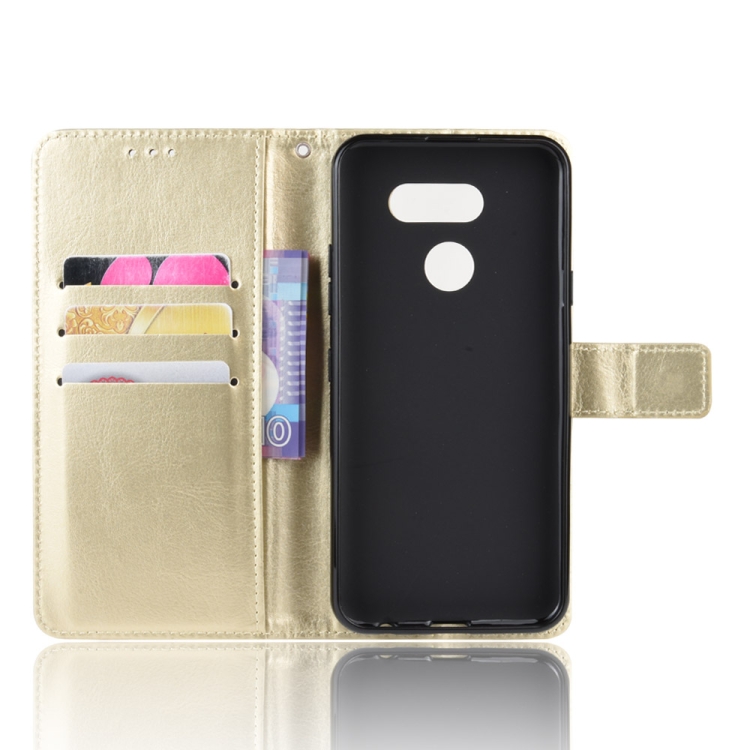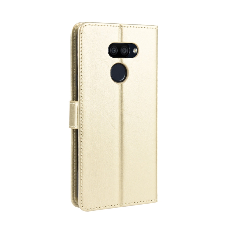 Funda de Cuero para LG K40S con Tapa Horizontal, Soporte, Ranuras para Tarjetas y Marco de Fotos (Dorado)