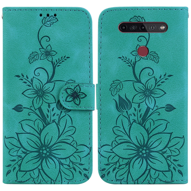 Estuche para Teléfono LG K41S y K51S Cuero En Relieve Lily (Verde)