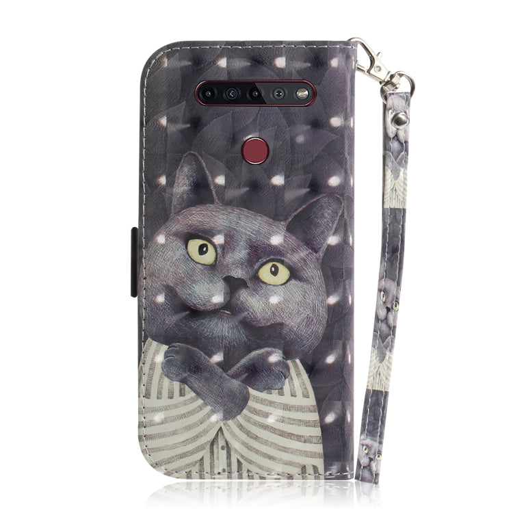 Funda Cuero Abatible Horizontal LG K41S K51S con Dibujo 3D Soporte Ranuras Tarjetas Billetera Cordón (Hug Cat)