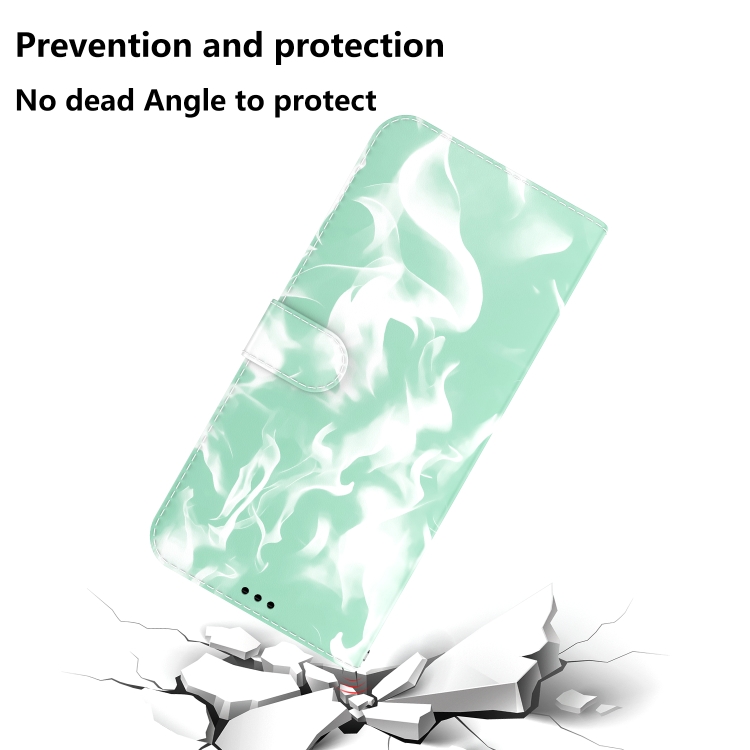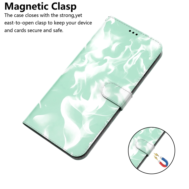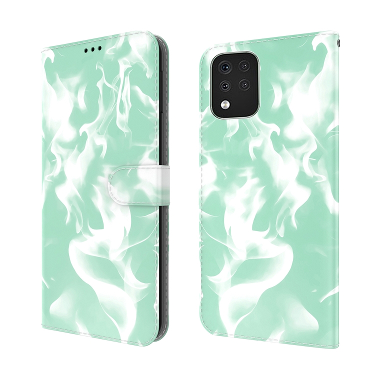 Funda de Cuero para LG K42 Cloud Fog Stattern con Soporte, Ranura para Tarjeta y Billetera (Menta Verde)