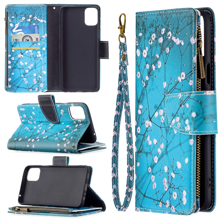 Funda Horizontal Flip para LG K42 con Cremallera, Soporte, Ranuras para Tarjetas y Billetera (Flor de Ciruela)