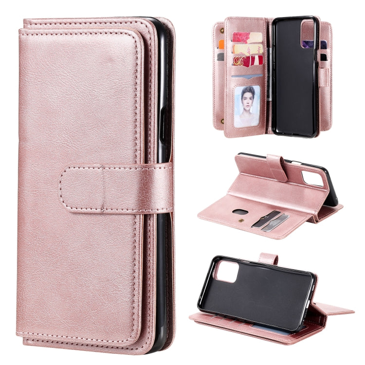 Funda de Cuero para LG K42 con Hebilla Magnética, 10 Ranuras para Tarjetas, Wallet, Soporte y Marco de Fotos (Oro Rosa)