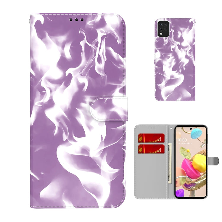 Funda de Cuero para LG K42 Nube Fog Pattel Horizontal Flip con Soporte y Ranura para Tarjeta y Billetera (Púrpura)