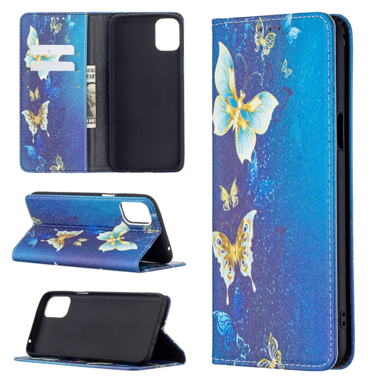 Funda de Cuero PU para LG K42 con Patrón Invisible, Soporte, Tragamonedas y Billetera (Mariposas de Oro)