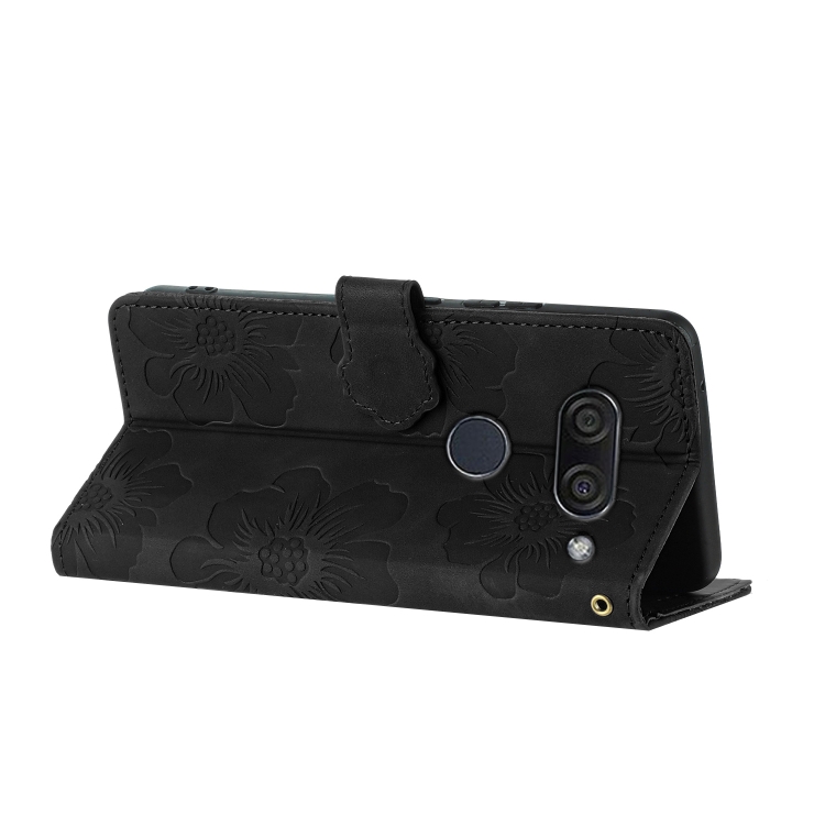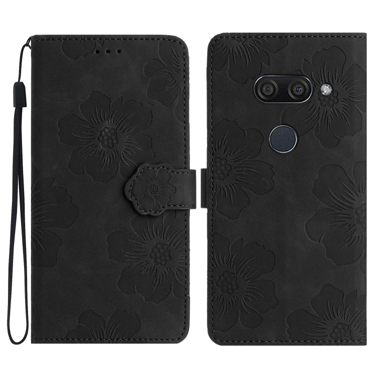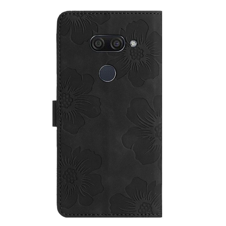 Funda de Cuero para LG K50 con Estampado de Flores en Relieve (Negro)