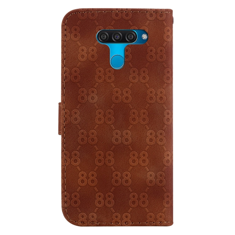 Estuche para Teléfono LG K50 / Q60 de Cuero en Relieve con Doble Forma de 8 (Marrón)
