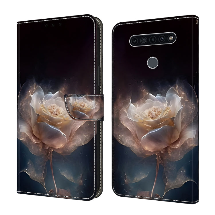 Funda de Cuero para LG K51 con Cristales Pintada (Peonía)