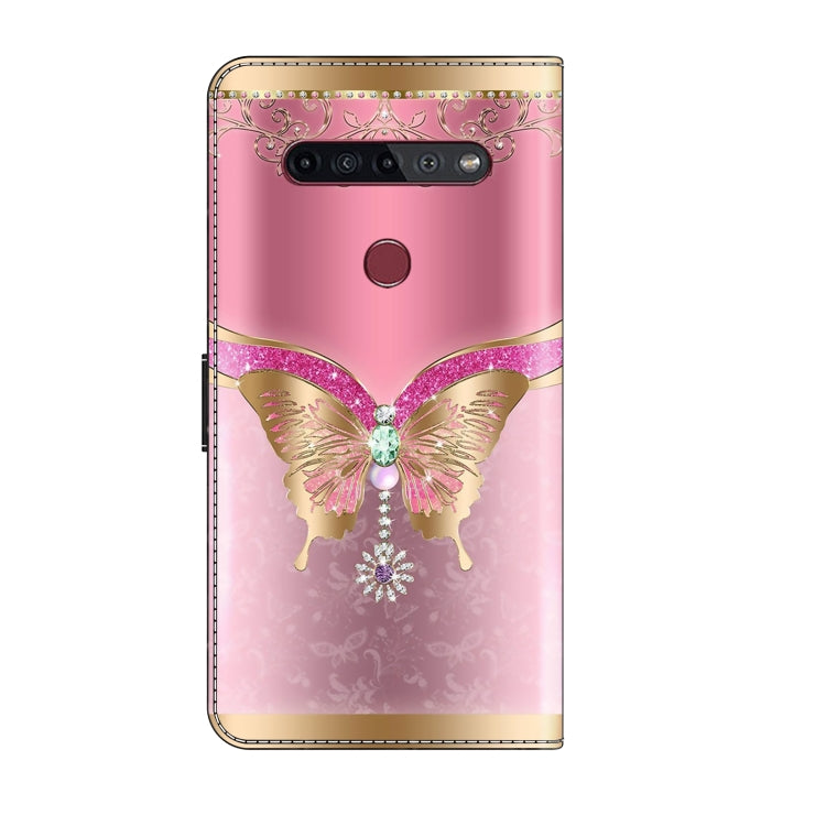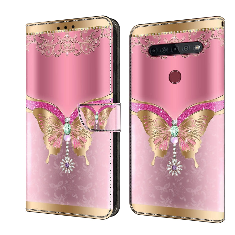 Funda Protectora de Cuero para LG K51S Crystal 3D a Prueba de Golpes (Mariposa Inferior Rosa)
