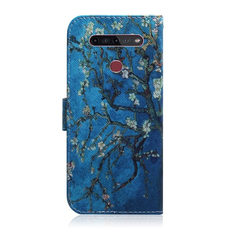 Funda de Cuero Abatible para LG K51S con Soporte, Ranuras para Tarjetas y Billetera (Flor de Albaricoque)