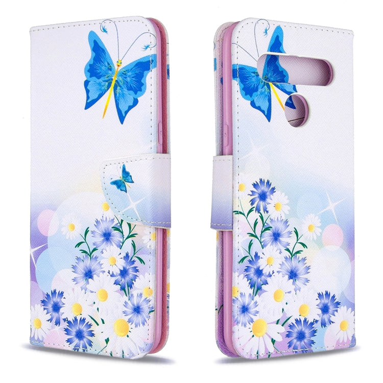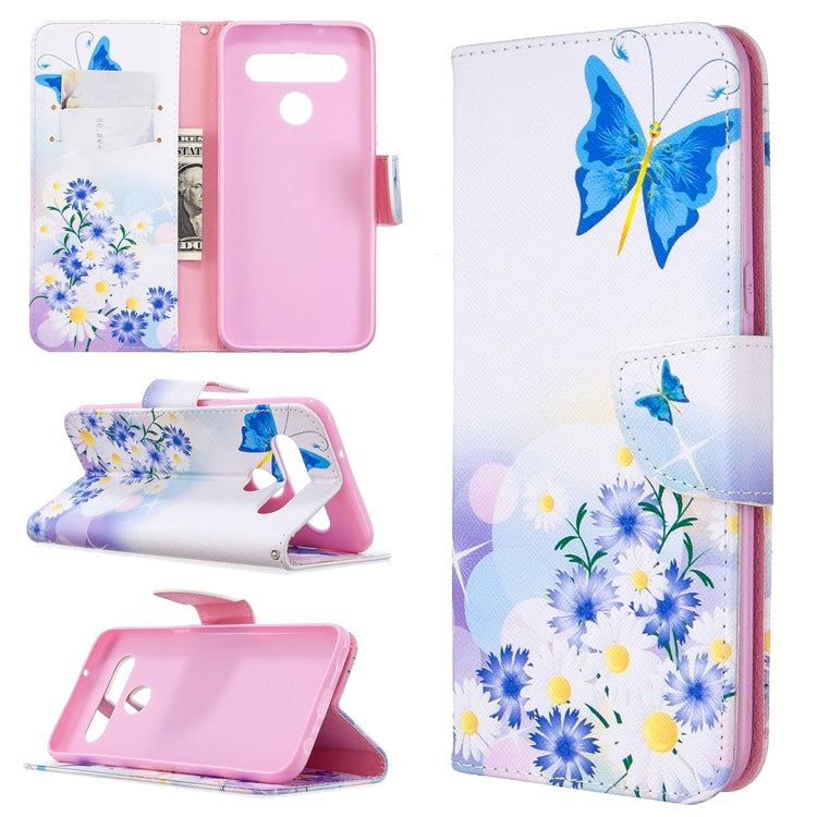 Estuche de Cuero Abatible Horizontal para LG K61 con Soporte, Ranuras para Tarjetas y Billetera (Flor y Mariposa)