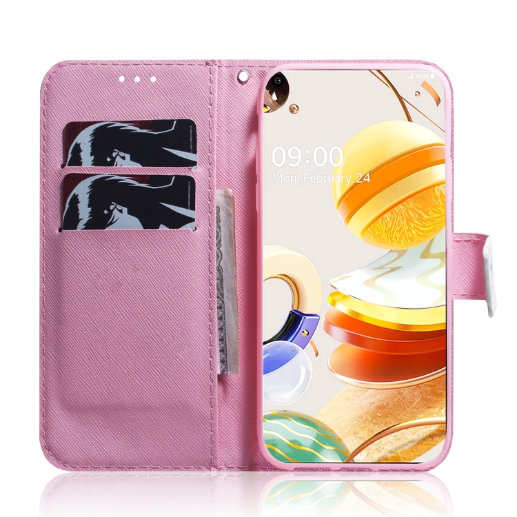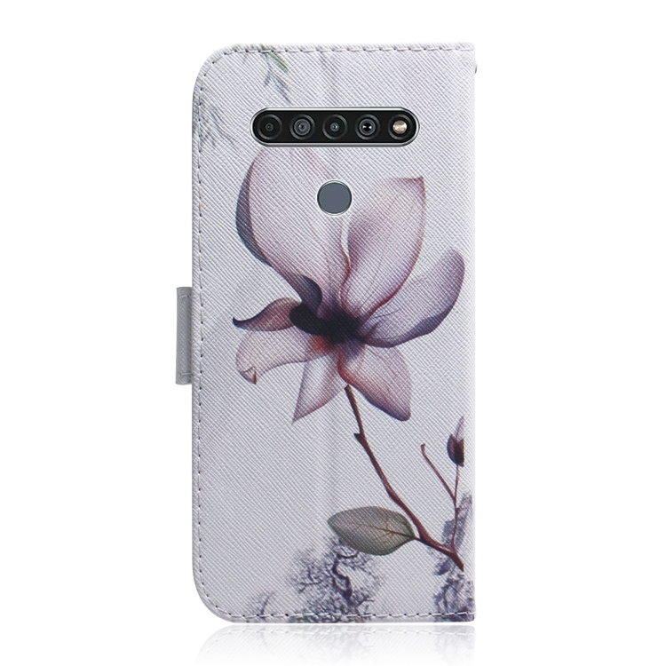 Funda de Cuero para LG K61 con Tapa Horizontal, Soporte, Ranuras para Tarjetas y Billetera (Flor de Magnolia)