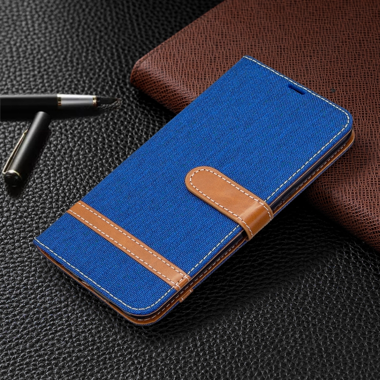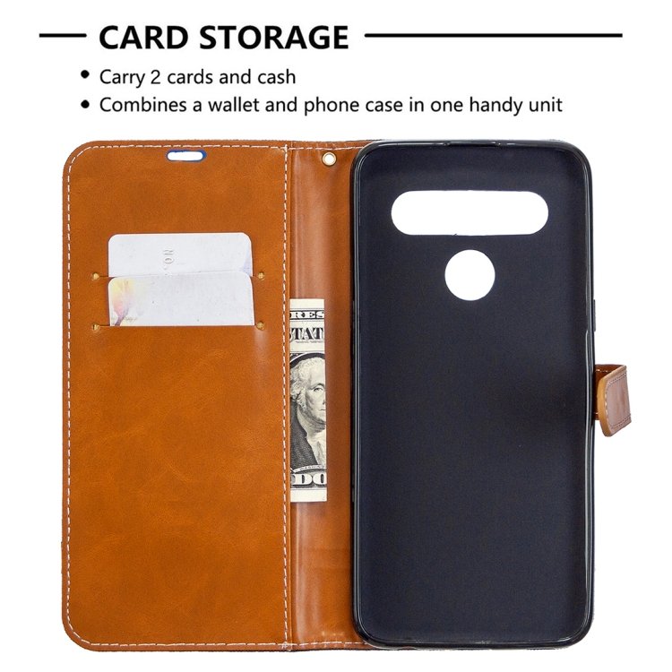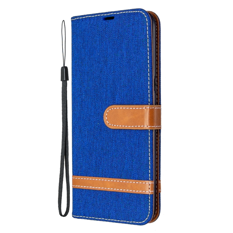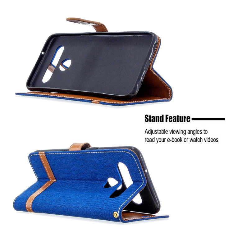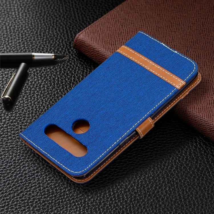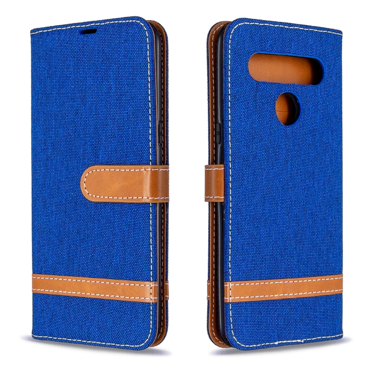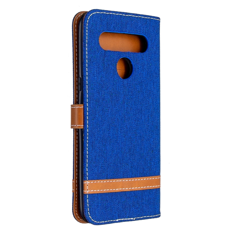 Funda de Cuero para LG K61 con Tapa Horizontal, Textura Mezclilla, Soporte, Ranuras y Cordón (Azul)