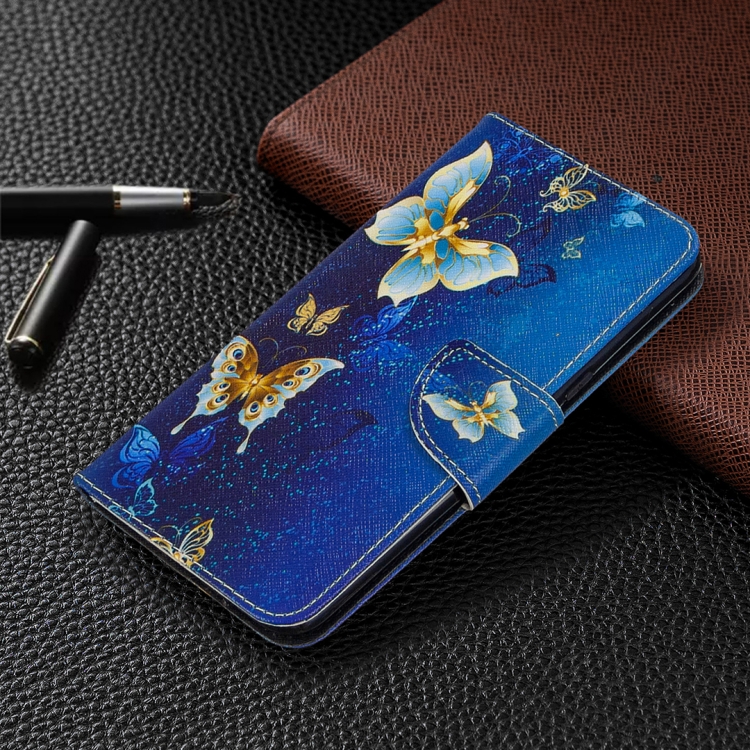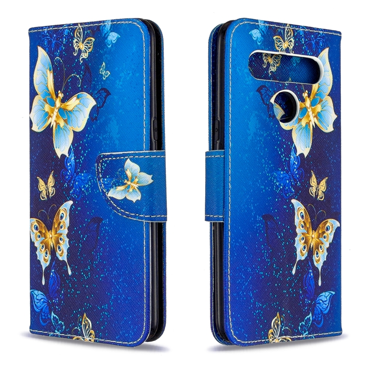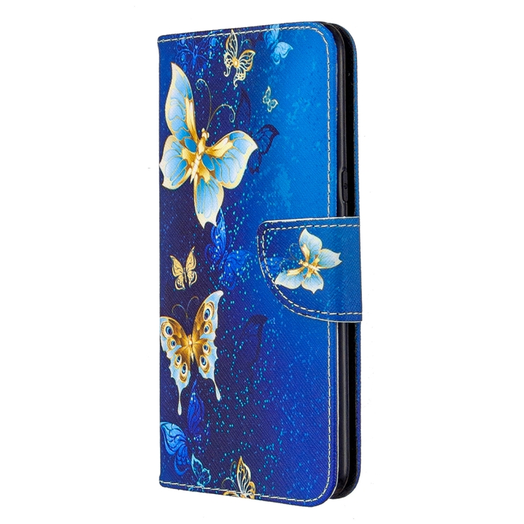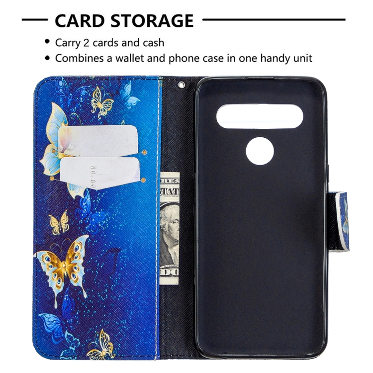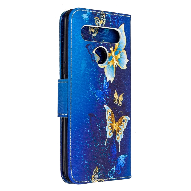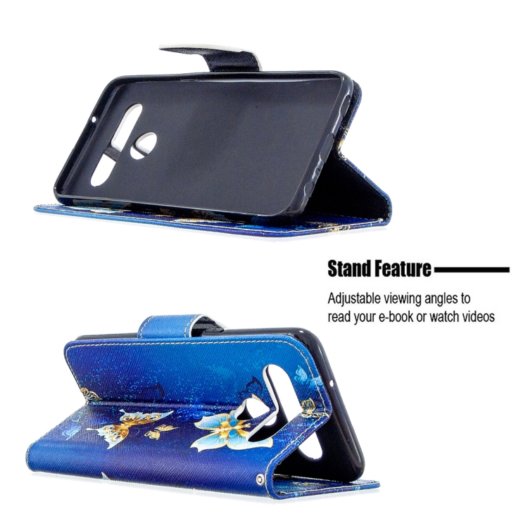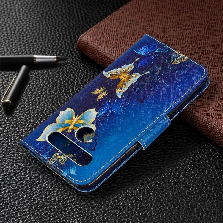 Funda de Cuero para LG K61 con Tapa Horizontal, Soporte y Ranuras para Tarjetas (Mariposa Dorada)