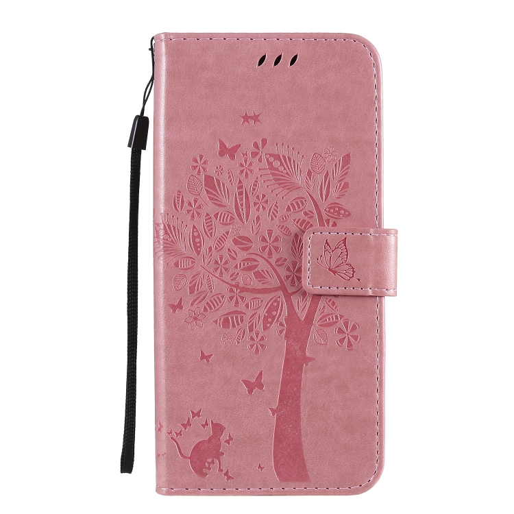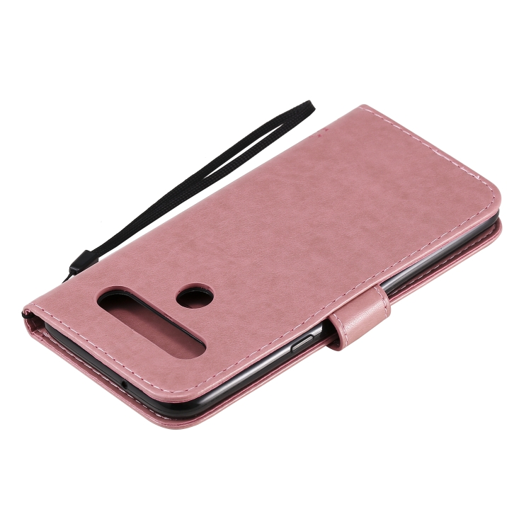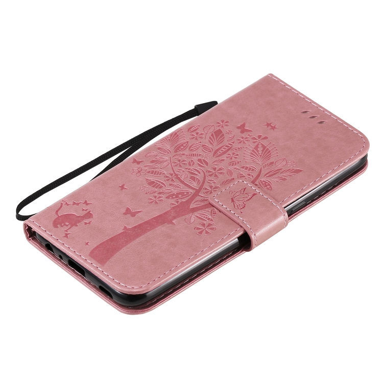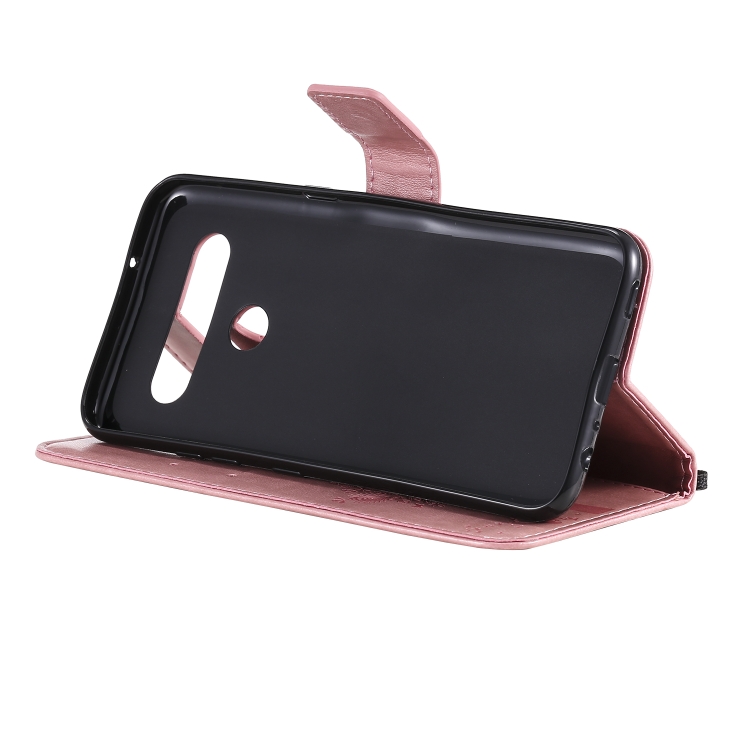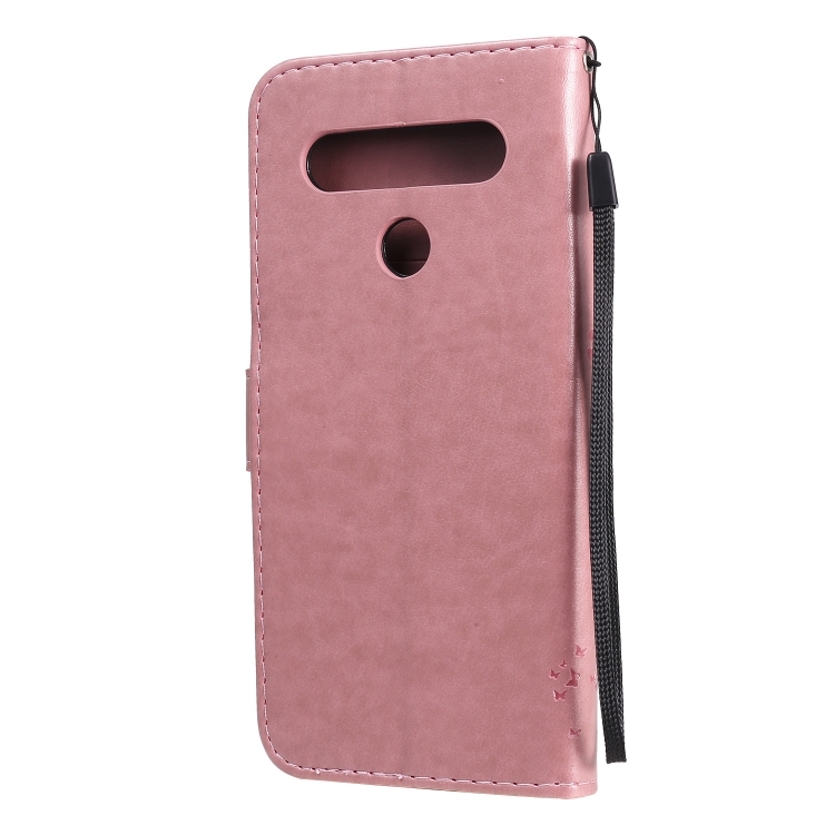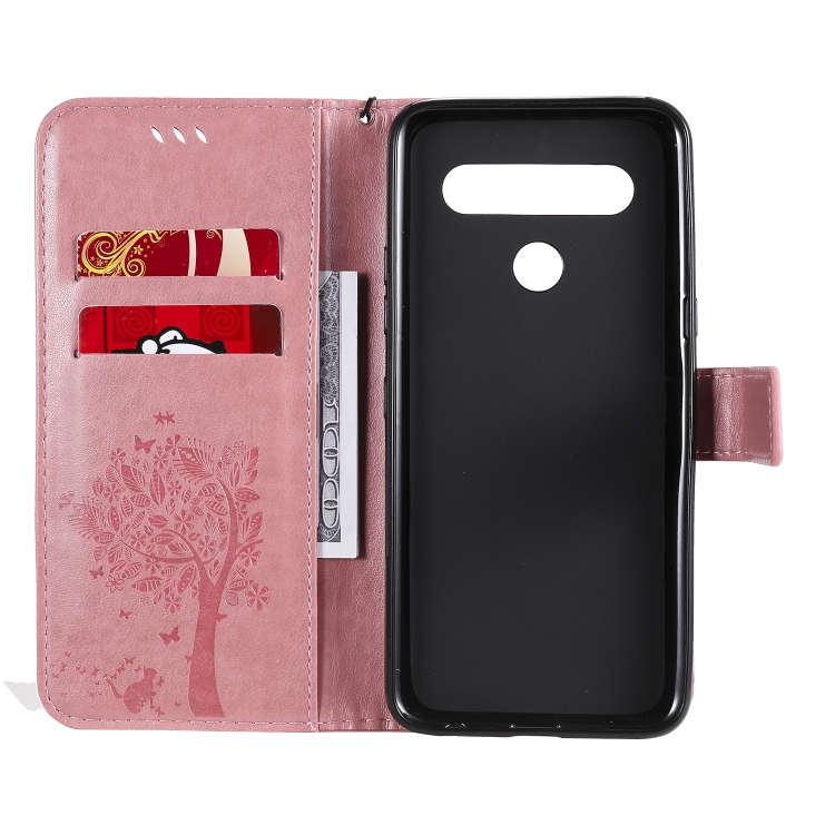 Funda de Cuero para LG K61 Tree & CAT con Tapa Horizontal, Soporte, Ranuras para Tarjetas, Billetera y Cordón (Rosa)