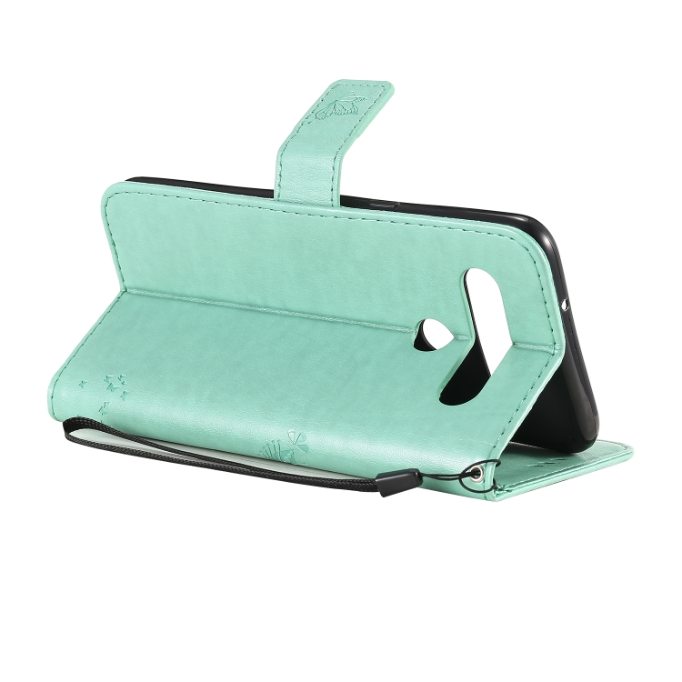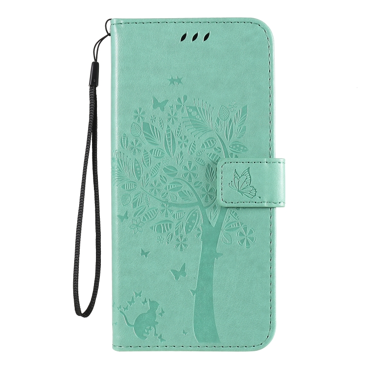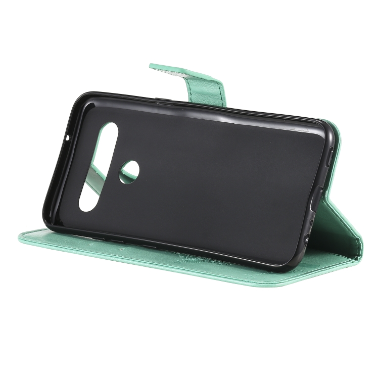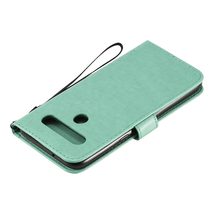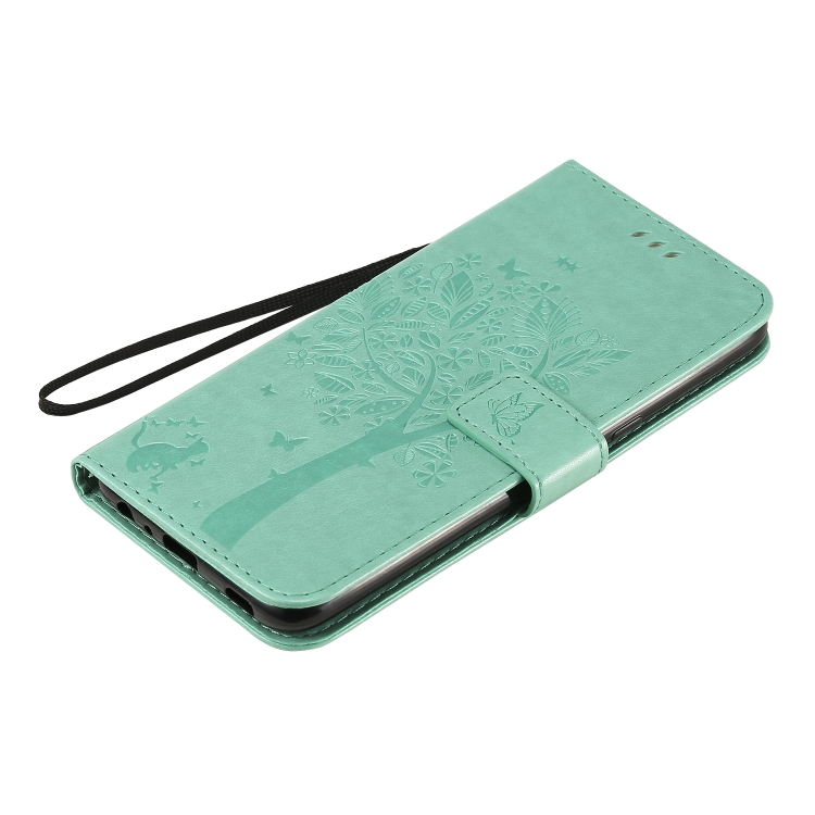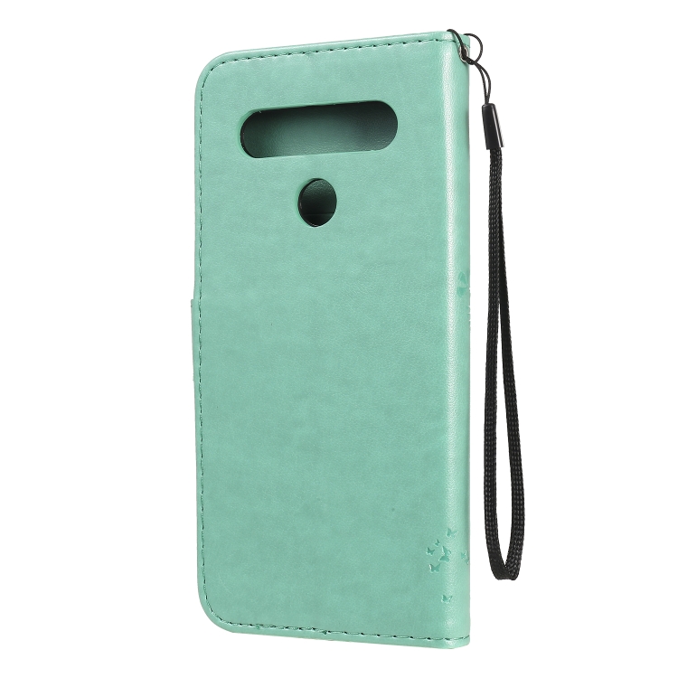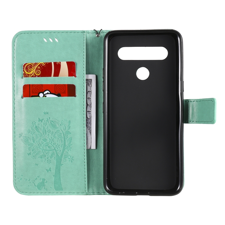 Funda de Cuero para LG K61 Tree & CAT con Tapa Horizontal, Soporte, Ranuras para Tarjetas y Cordón (Verde)