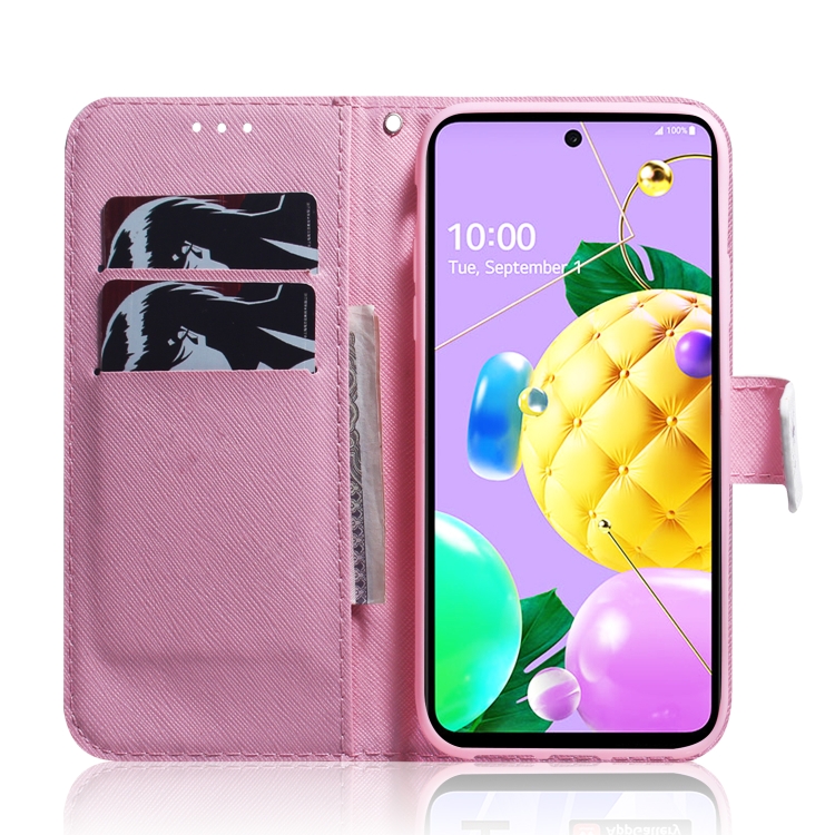 Estuche de Cuero Abatible Horizontal para LG K62 K52 Q52 con Soporte, Ranuras y Billetera (Flor de Magnolia)