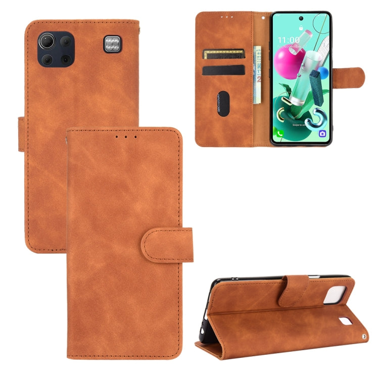 Funda Cuero PU para LG K92 5G con Tapa Horizontal, Hebilla Magnética y Ranuras para Tarjetas (Marrón)
