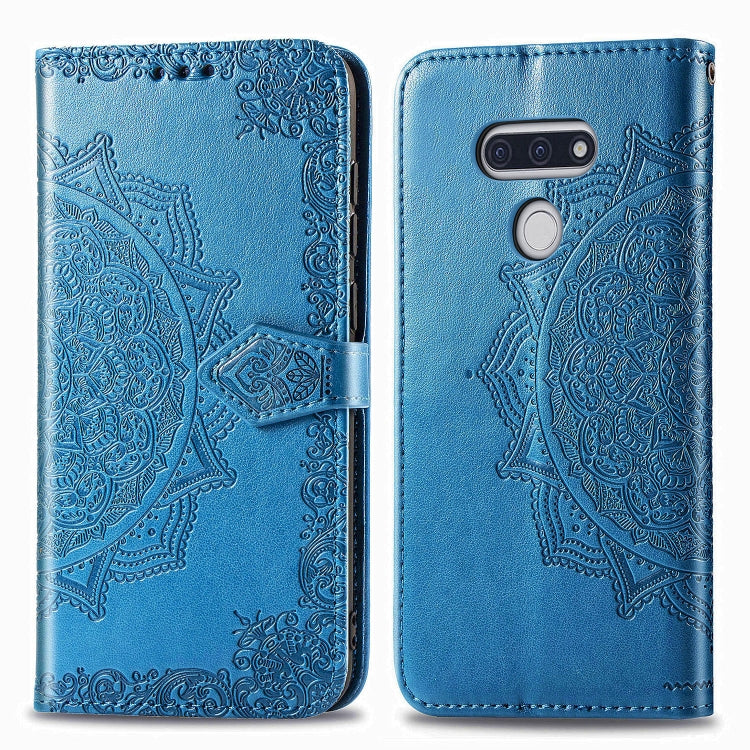 Funda de Cuero LG Style3 L-41A Mandala Flower Tapa Horizontal Soporte Ranura Tarjeta Billetera Cordón (Azul)