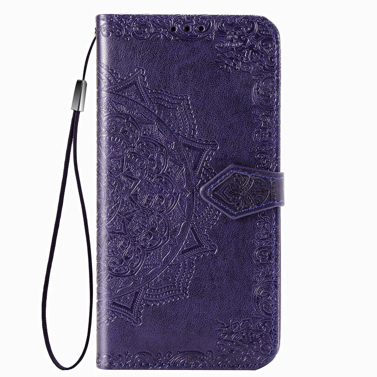 Funda de Cuero para LG Style3 L-41A Mandala Flower con Tapa Horizontal, Soporte, Ranura para Tarjeta y Cordón (Morado)