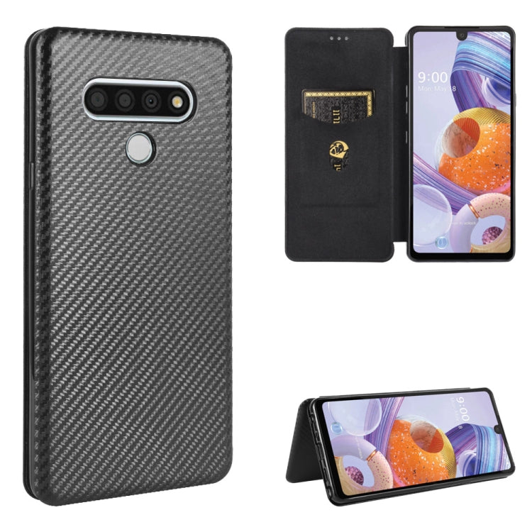 Funda de Cuero LG Stylo 6 con Tapa Magnética Horizontal Textura Fibra de Carbono TPU + PC + PU (Negro)