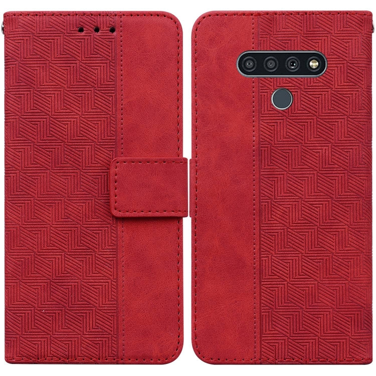 Caja de Cuero para LG Stylo 6 y K71 con Relieve Geométrico (Rojo)