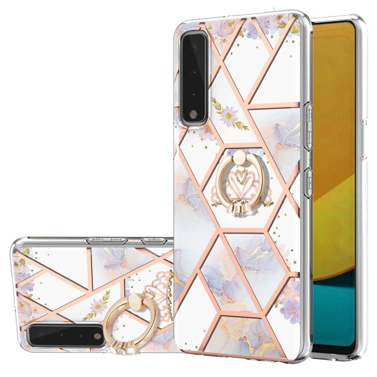 Funda TPU para LG Stylo 7 5G con patrón de flores mármol y soporte anillo (Corona Imperial)