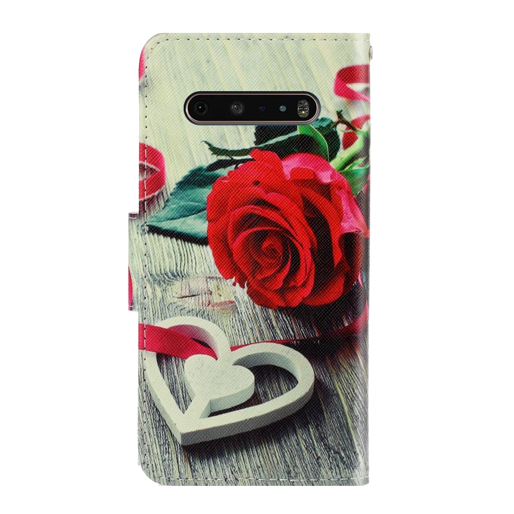 Funda de Cuero Abatible Horizontal para LG V60 con Soporte, Ranura para Tarjeta y Billetera (Rosa Roja)
